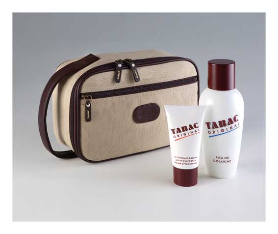 -Tabac Original Eau de Cologne 300 ml + OBSEQUIOS (After Shave Balm 75 ml para calmar e hidratar la piel sensible después del afeitado y un práctico neceser). PVP Rec 49,90 €.
