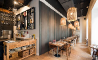 Muros de ladrillo visto, viejas columnas de fundición y vigas de madera son los elementos originales del local que conviven con una barra ondulada de cemento pulido donde se puede comer con vistas a una cocina abierta y sin secretos al estilo neoyorquino, separada por una imponente celosía de acero y cristal.