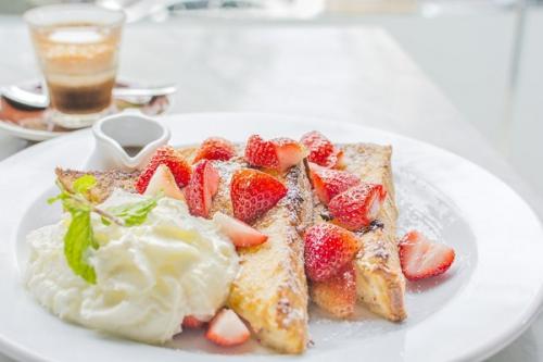 8- Rápidamente rebozamos cada una de las torrijas en la mezcla de azúcar y canela. Servimos calientes acompañadas de una bolita (¡o dos!) de helado Abbot Kinney’s Coco Frost Natural, un puñado de nueces picadas, frutos rojos y por último un chorrito.