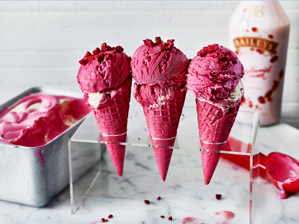 Teniendo en cuenta esta tendencia cromática, Baileys presenta algunos postres que apuestan todo al color para que los adultos más golosos se cuelguen el delantal y se den un capricho cualquier día de la semana. Algunos ejemplos: Panacota cremosa con Baileys Original, con un corazón de tarta de arándanos; helado de frambuesa con Baileys Strawberries & Cream para adentrarte en el mundo del maximalismo del color, servido en un cono de gofre rosa; o, por qué no, trufas de chocolate con Baileys Original, inspiradas en cristales de geoda, ¡un bocado de pura diversión! El paso a paso de las recetas puedes encontrarlo aquí
