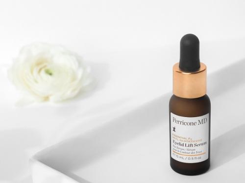 Perricone MD Essential FX Eyelid Lift Serum es un suero destinado específicamente para la zona de la cuenta superior y el área de la ceja. Su fórmula está diseñada para tratar y prevenir las cascadas de envejecimiento que producen el descolgamiento del tejido. Los ingredientes estrella son la acil glutationa, un compuesto de 3 aminoácidos. El glutatión es el principal antioxidante del organismo y ayuda a reducir la apariencia de arrugas profundas y pliegues al proteger y reponer la piel frágil. Los niveles naturales de glutatión se agotan con la edad, por lo que una aplicación tópica puede ayudar a que la piel se vea más suave y más joven.