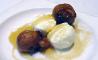 Buñuelos de plátano con salsa de chocolate o miel de encina o helado de yogurt