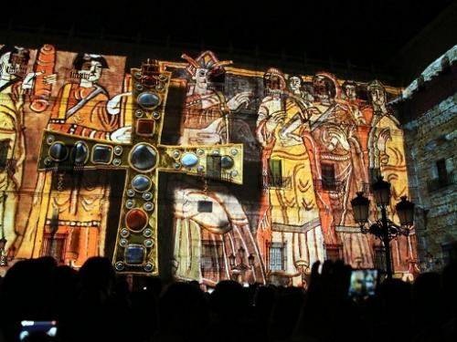 En total se han ofrecido 16 pases del video mapping durante tres jornadas, que “han estado llenos de gente, copando la explanada”, según ha apuntado la edil de Cultura, accediendo al recinto todas y cada una de las personas que guardaban la fila, que en ocasiones se extendía hasta el inicio de la cuesta de Armas.