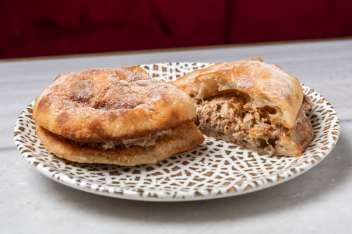 Para el montaje, abrimos el mollete y lo tostamos con mantequilla.
