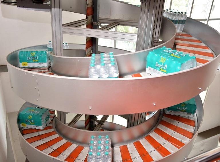 La empresa suiza Ferag AG ha construido un sistema deniway de altura récord para Bisleri, la principal embotelladora de agua mineral de la India, en su planta de Bombay. Las dos líneas deniway instaladas transportan botellas llenas de agua y en packs de la estación de llenado en el piso superior al área de expedición en el piso inferior. El transportador en espiral llega a alcanzar una altura de 20 metros, lo que hace que sea el más alto que haya construido Ferag hasta la fecha. Se trata de un sistema compacto dispuesto en vertical para ahorrar espacio, pero con capacidad para procesar hasta 6.000 packs de botellas por hora.