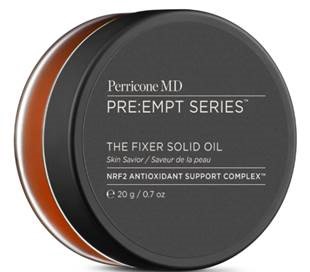 The Fixer Solid Oil de Pre:Empt Series Perricone MD, presenta una fórmula de aceite en gel que se transforma en líquido no graso en contacto con la piel. La solución perfecta multifunción para zonas ásperas, secas o incluso para cabellos quebradizos y cejas rebeldes. Su diseño elegante y práctico es perfecto para llevar de viaje a cualquier parte.