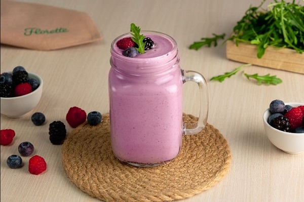 Smoothie de frutos rojos, rúcula y jengibre