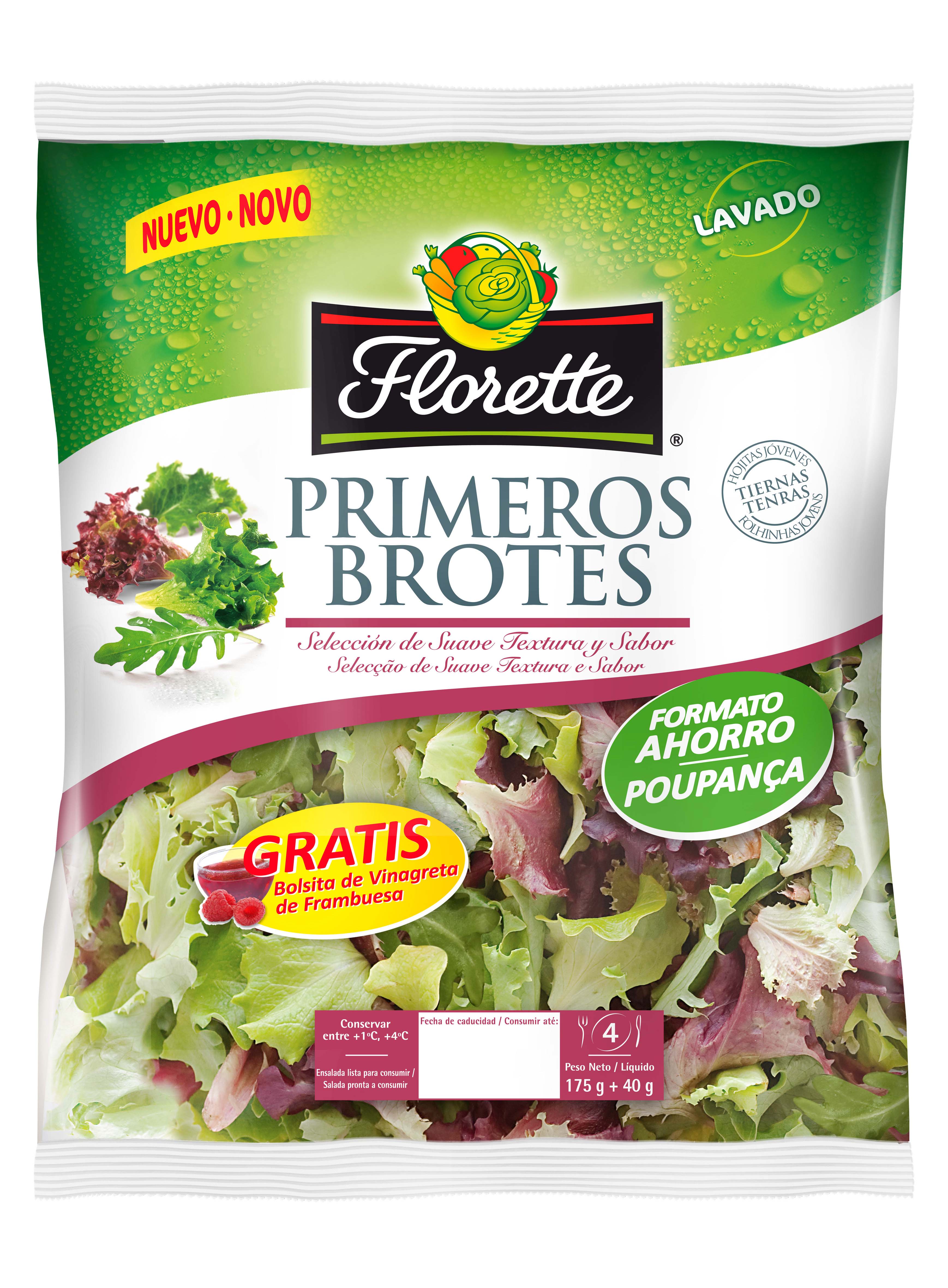 Los ‘Primeros Brotes’ de Florette han revolucionado el mercado de las ensaladas desde su lanzamiento debido a su condición de únicos y novedosos. La marca líder en ensaladas de IV gama también ha lanzado durante 2009 el formato ‘Maxi Ahorro’ de su variedad Gourmet, con una excelente relación calidad-precio.
