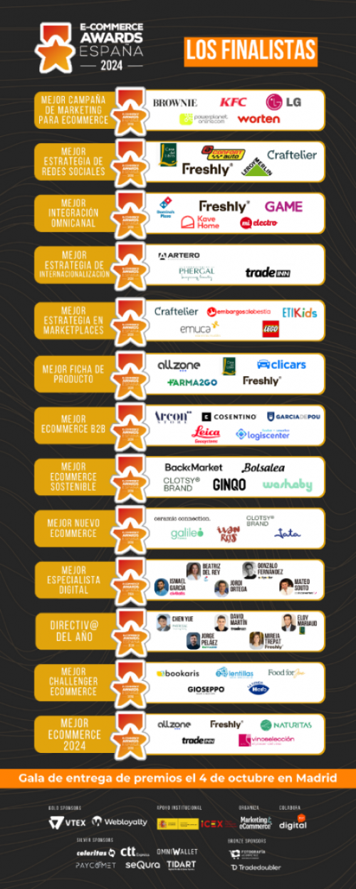 La diversidad y calidad de los participantes reflejan el auge del comercio electrónico en España, con una mezcla de proyectos nativos digitales y marcas tradicionales consolidadas que han dado un paso firme en su estrategia digital, y también proyectos B2B que están avanzando significativamente en su presencia online. Sectores como Moda, Alimentación, Cosmética e Informática lideran la lista de inscritos. "Entre los finalistas hay marcas muy potentes, conocidas y otras que ni nosotros controlábamos, lo cual es emocionante porque nos permite descubrir y reconocer a verdaderos talentos del eCommerce", afirman desde la organización de los ECommerce Awards.