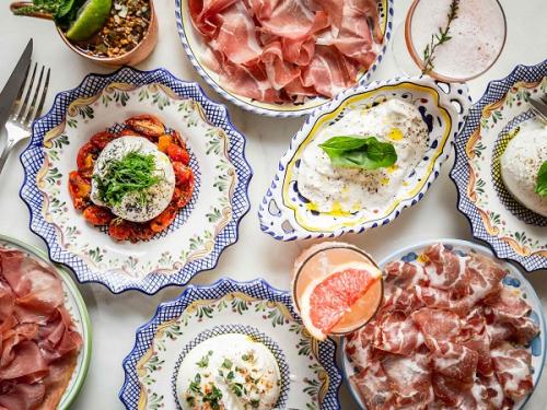 Antipasti party: prosciutto di parma directamente de Onesto Ghirardi, mortadella al tartufo de Bologna, esponjosas burratas pugliesi, una fresca ensalada de endivias, pera y gorgonzola y crujientes bocados como los calzoncini o las míticas croquestar con trufa de Molise.