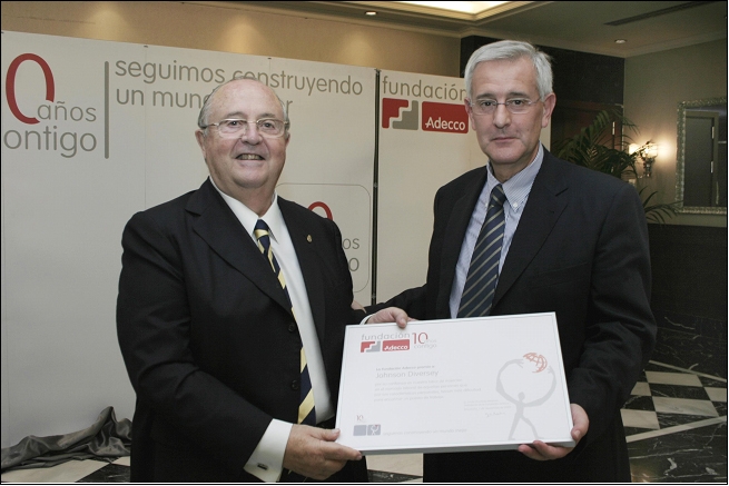 Javier Mejías fue el encargado de recoger el premio que la Fundación Adecco ha otorgado a JohnsonDiversey por su implicación en la integración de personas con dificultad para acceder al mercado de trabajo.