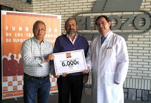 En el acto de entrega del cheque han intervenido el presidente de la Fundación de Trabajadores de ElPozo, Manuel García Juesas, y su secretario, Miguel Benedicto, y por parte de la Fundación Francisco Munuera Martínez, su secretario, Francisco Cánovas Cánovas.