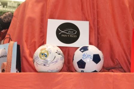Balones firmados por la plantilla del Real Madrid F.C. (dcha.) y por Xabi Alonso, donados por la Fundación Pan y Peces.