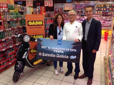 Gadis y Estrella Galicia hanvuelto a poner en marcha una acción conjunta para premiar la fidelidad de los clientes de los puntos de venta de Galicia y Castilla y León. Enesta ocasión,el regalo sorteado ha sidouna moto Vespa.