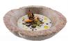 Raya asada sobre cenizas vegetales, caldo de interiores de chipirón y crema de ajo rustido