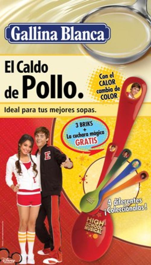 A la promoción del producto Caldo Gallina Blanca en brik, con "La Cuchara Mágica" (High School Musical). La acción consiguió que los niños y jóvenes de este país incrementasen el consumo de sopas gracias a estas cucharas con sus personajes de referencia que cambian de color con la temperatura de la sopa, indicando a través de un código de color el momento óptimo para el consumo de la sopa.