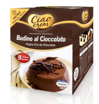 La nueva gama Ciao Crem incluye 11 variedades: Panna Cotta, Budino al Cioccolato, Mousse de Yogur, Mousse de Fresa, Mousse de Limón, Mousse de Chocolate, Crema Catalana, Cuajada, Postre Frío Limón y Flan y Natillas Instant.