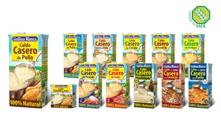 Con ingredientes cuidadosamente seleccionados, el nuevo Caldo Casero 100% Natural Gallina Blanca está cocinado a fuego lento durante tres horas para obtener el mejor sabor. Sin conservantes y bajo en grasas, de esta manera se consigue un sabor natural y casero, al mismo tiempo que ayuda al consumidor a llevar una dieta variada y equilibrada. El caldo es también apto para celíacos, tal como certifica el sello FACE (Federación de Asociaciones de Celíacos de España) en el envase.