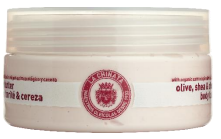 Dispone de las propiedades del Aceite de Oliva Virgen Extra, que previene los signos de la edad y actúa de antioxidante. El karité, un nutritivo natural con grandes poderes hidratantes, y la cereza, que gracias a su vitamina C y sus proteínas revitalizantes, combinadas con las propiedades del yogurt, mantienen la hidratación de la piel y ayuda a la protección, corrección y renovación de las células de la epidermis.