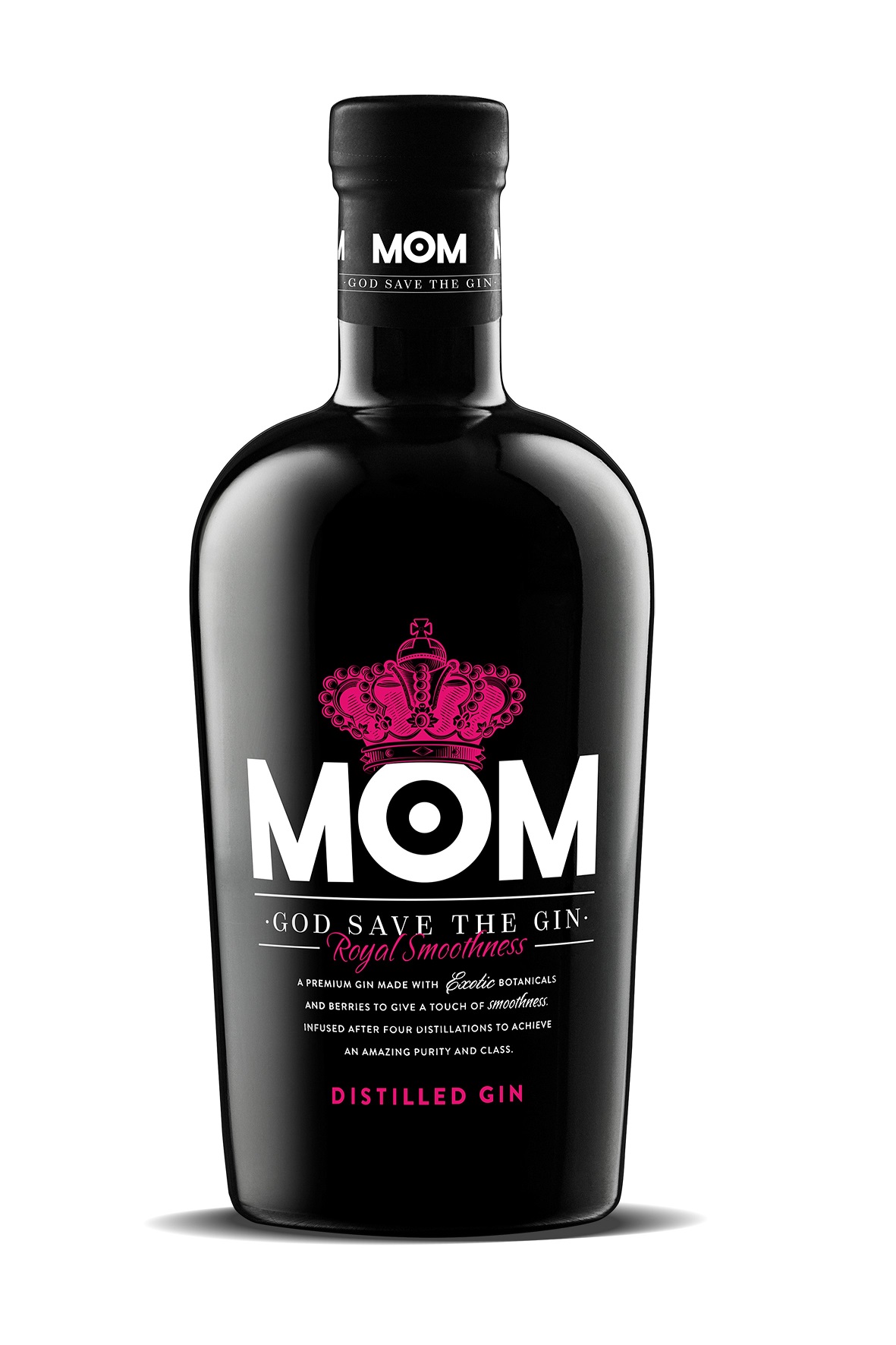 Su diseño negro y magenta revela la misma dualidad que el carácter británico: tradicional y vanguardista. MOM llega al mercado con el objetivo de romper estereotipos. Se trata de un modelo de botella con importantes peculiaridades en su packaging ya que, Estal Packaging, especializada en la producción de soluciones de embalaje para el sector alimentario y bebidas, ha creado una botella de vidrio negro opaco sobre el que se le aplica una serigrafía en dos colores logrando un acabado excelente.