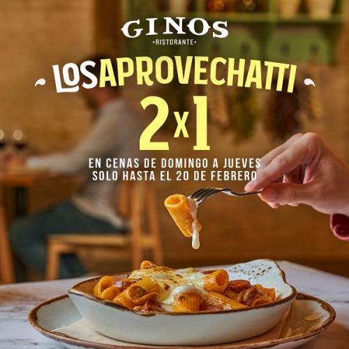 GINOS, cadena de restauración especializada en cocina ítalo-mediterránea operada por el Grupo Alsea en España, ha lanzado una vez más su promoción más esperada: Los Aprovechatti 2x1, para aquellos que quieren disfrutar de platos elaborados al momento, y en un ambiente cálido y cosmopolita que invita a compartir.