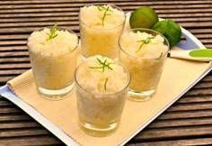 Cuando esté listo para servir, servid con cuchara el granizado en vasos fríos y cubridlo con un poco de ralladura de lima, si lo deseáis.