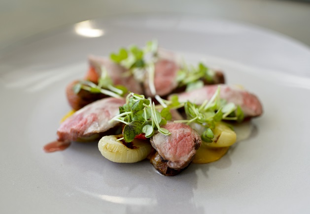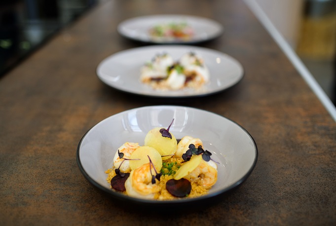 Sergi Arola realizó dos platos; un primero compuesto por Langostinos a la parrilla, aromatizados en un aceite de jengibre limón, unas migas con manzana y remolacha y lágrimas de aceite de oliva, y como plato principal una Presa Ibérica y mango en un escabeche ligero de Tío Pepe, y brotes de mostaza. El menú íntegro se realizó con los grills de la marca, mostrando así su funcionamiento sencillo y limpio.