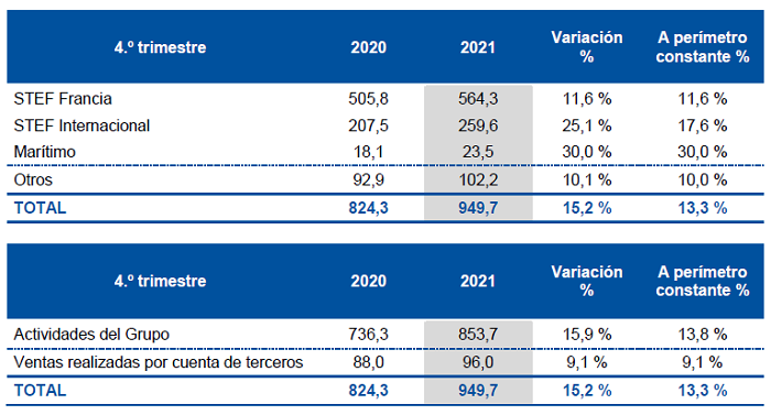 La cifra de negocio acumulada 2021 asciende a 3.506,6 millones de euros, lo que representa una progresión de un 11,5 % frente al año 2020 (un 9,4 % a perímetro constante).