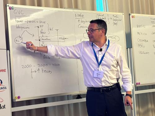 Posteriormente, Morera ha hecho una radiografía del consumo de proteína en mercados emergentes como en América Latina y ha desvelado las claves que han propiciado que la corporación entre en la participación accionarial de compañías de referencia en Méjico, Colombia, Brasil, Perú, Uruguay o Ecuador. En este sentido, Morera ha indicado que la estrategia del Grupo Vall Companys en América Latina siempre se ha construido a través de alianzas con operadores locales para poder crecer de forma conjunta y con el valor añadido de una perspectiva de conocimiento del mercado local. Los países analizados y en los que Grupo Vall Companys ha decidido invertir en participaciones accionariales son mercados con un potencial de crecimiento interno en consumo de cerdo. El caso de éxito fue introducido por el profesor y director del FOODepartment, José Antonio Boccherini, y analizado por los alumnos -que asimismo son cargos empresariales relevantes del sector de la alimentación en LATAM-.