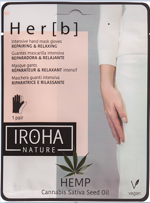 Guantes mascarilla reparadores y relajantes con aceite de semilla de cannabis: dentro de la línea Her[b] de Iroha Nature, destacan los guantes mascarilla con una fórmula completa para calmar las manos y aportar nutrición intensiva. Estos guantes compuestos con una alta concentración de ingredientes de origen natural (96%) y aptos para veganos con Cannabis Sativa Seed Oil, Aloe Vera y Ginseng Coreano, aportarán hidratación y calma a la piel irritada, regeneran y reparan en profundidad y proporcionan una sensación de relajación. PVP: 4.95€