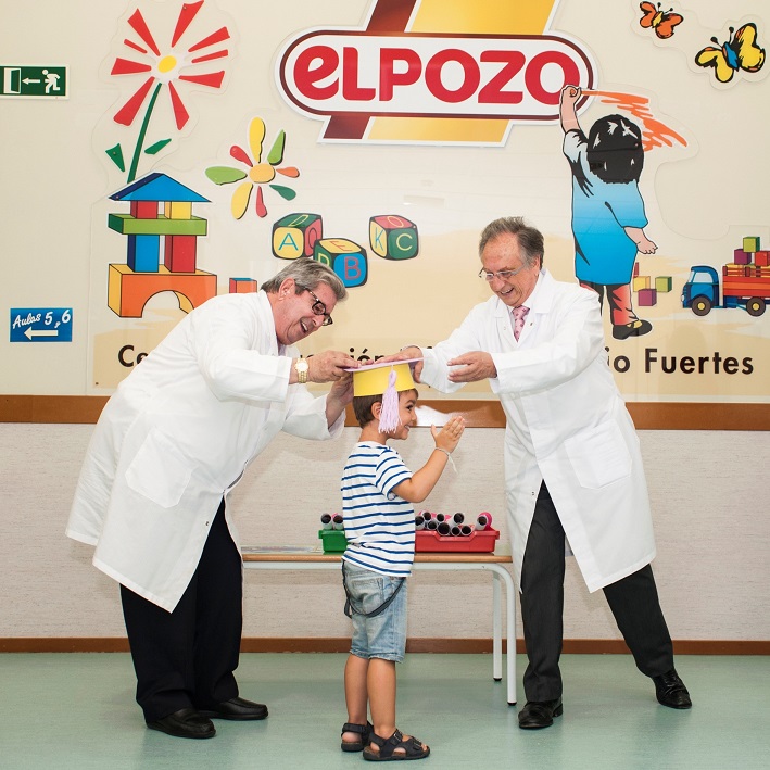 El presidente de ElPozo, Tomás Fuertes, fue el encargado de entregar los diplomas a los 22 alumnos de tres años que este año se gradúan y pasan al primer ciclo reglado de educación infantil. Todos ellos son hijos de trabajadores de la fábrica alhameña que disfrutan de un servicio adaptado a sus necesidades y ubicado frente a su centro de trabajo.