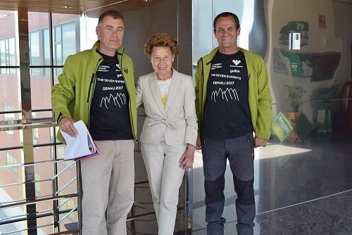 María Teresa Rodríguez, presidenta de Gullón, se ha reunido con los líderes de la expedición, Roberto Ceballos y Mitxelko Cuñado, quienes le han explicado los detalles de la ruta que van a seguir y las dificultades que supone la subida a la que es considerada como la montaña más fría de la Tierra.