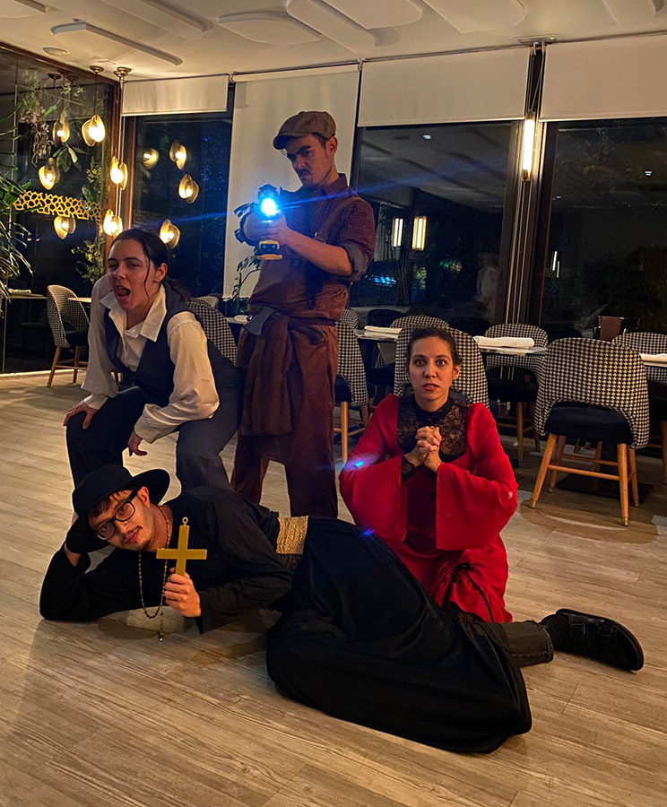 El 31 de octubre El Jardín de Arturo Soria y su equipo de sala se tiñen de sangre y sombras para mimetizarse esa noche con su Cluedo y habrá un chupito sangriento de bienvenida por cortesía de la casa para los asistentes que acudan disfrazados y se metan en el papel de las películas de terror que ese día dan nombre a las mesas: La matanza de Texas, Carrie, La Semilla del Diablo, El Resplandor, Psicosis, Scream, Pesadilla en Elm Street, Nosferatu, El Exorcista… Cada comensal, según dónde le haya tocado sentarse, podrá interpretar el papel de una congregación, colegio de abogados, detectives o asociación de Boston que le sea asignado para resolver la terrorífica naturaleza del ‘Centro Psiquiátrico Rosas Negras’, que durante esta velada tan especial abre sus puertas al público dando una fiesta, cómo no, de Halloween... ¿Lo hacen para recaudar fondos y evitar que una de las instituciones penitenciarias para enfermos mentales de mayor renombre en todo el país sea clausurada? ¿¿O hay algo más sombrío detrás?? Habrá que descubrirlo entre bocado y bocado, rompiéndose los sesos mientras se disfruta de platos como el Tartar de Salmón con aguacate, la Ensaladilla rusa Alma, las Croquetas cremosas de jamón ibérico, las Gyozas mixtas de verduras y pollo, el Bikini Alma, los Torreznos de Soria con patatas revolconas o el Bao de cochinita pibil además de un Coulant de chocolate con helado de frambuesa de postre y dos bebidas por persona. El precio de la experiencia completa es de 60 € por persona. Las reservas se hacen a través de correo electrónico (reservas@eljardindearturosoria.com) o por teléfono (91 896 59 25) y la apertura de puertas es a las 20:30 h, ¡¡hay que ser puntual!!