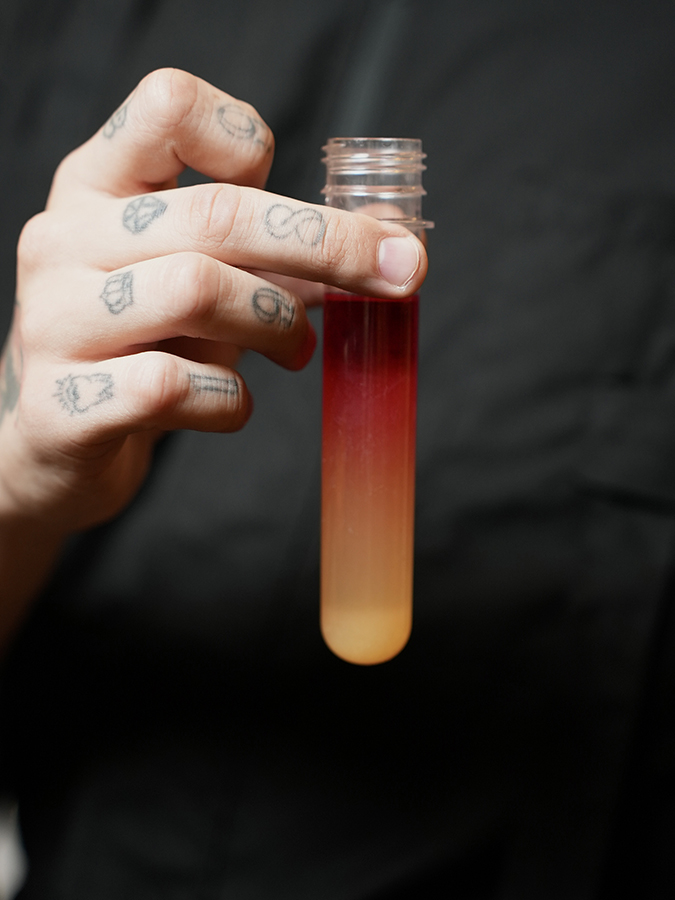 Trago sangriento: vodka, licor de melocotón, licor de frambuesa, zumo de arándanos y naranja fresca