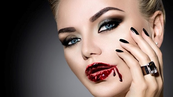 Complementando la potente mirada que hemos logrado, unos labios rojo sangre te convertirán en la reina de la oscuridad.
