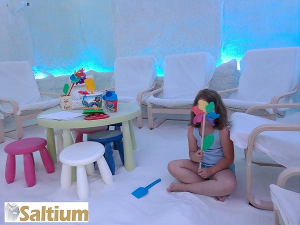 Saltium ha convertido estas salas donde se inhala la sal en auténticas “cuevas de sal” gracias a una tecnología pionera y exclusiva, en las que se puede respirar un ambiente salino de pureza máxima. Para recibir las sesiones sólo hay que tumbarse y respirar las micropartículas proyectadas al aire por un halogenerador durante los 50 minutos para que lleguen al haz bronquial. Para que las sesiones sean más relajantes, en las cuevas donde hay niños hay televisión, juguetes y materiales de entretenimiento y en las de adultos, el relax se complementa con cromoterapia y música clásica.