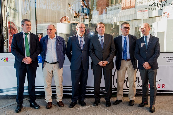 El presidente de la Asociación Interprofesional del Cerdo Ibérico (Asici), Francisco Javier Morato, y el ministro de Agricultura, Pesca y Alimentación, Luis Planas, daban ayer por la tarde el pistoletazo de salida al “road show” que recorrerá 24 ciudades europeas hasta 2020 y se dirigirá a consumidores urbanos, con poder adquisitivo medio-alto y con intereses en gastronomía, alimentación, restauración, dieta equilibrada y saludable, así como a chefs, responsables de restaurantes, escuelas de hostelería, periodistas e influencers, entre otros públicos objetivos de la campaña. Una campaña que espera alcanzar más de 425 millones de impactos.
