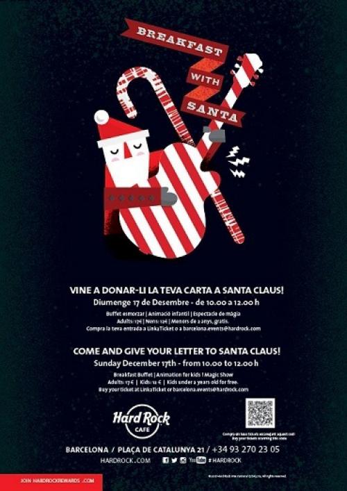 El próximo 17 de Diciembre, en el Cafe barcelonés de la mítica cadena Hard Rock se celebrará un divertido desayuno para familias de 10 a 12.00h. Mientras los más pequeños esperan la llegada de Santa, las familias podrán disfrutar de una completa oferta gastronómica y en compañía de divertidos personajes navideños y de un fantástico espectáculo de magia.