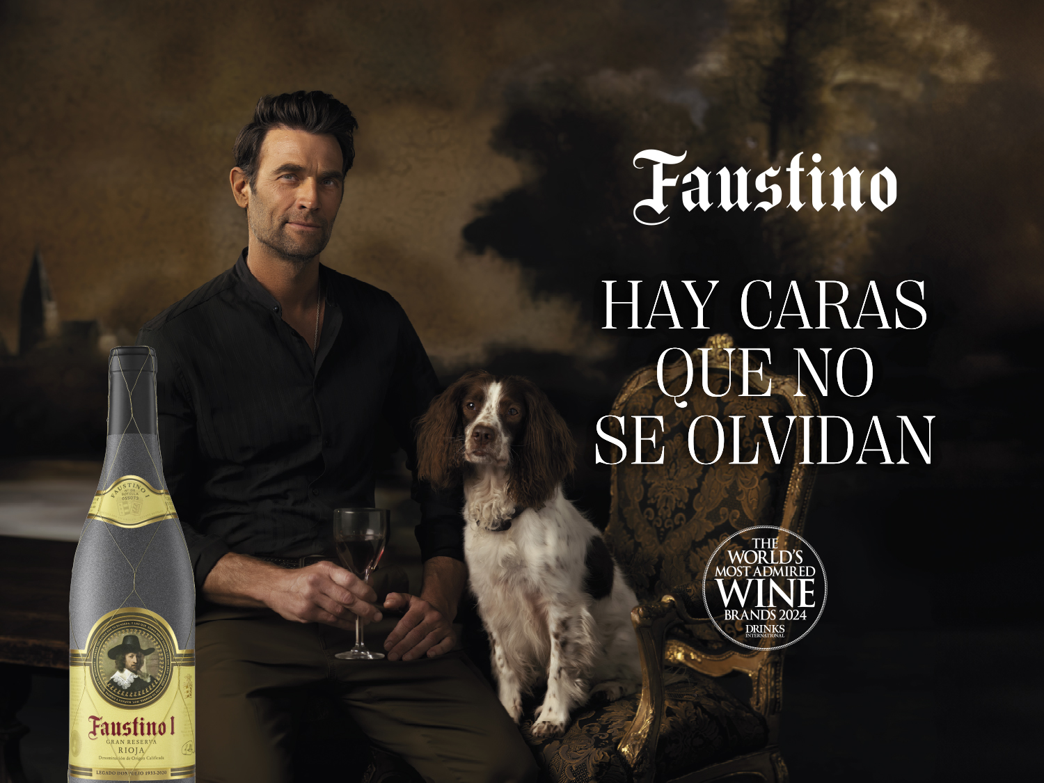 La marca Faustino alardea de su icónico retrato y su nombre propio poco común en la actualidad en su nueva campaña, siendo una de las 20 marcas de vino más admiradas del mundo.