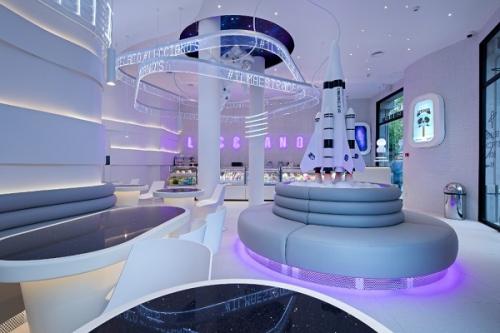 Y es que la tienda, que se ubica en la Rambla de Catalunya con Gran Vía, es una experiencia en sí misma. Emula ser una estación espacial y fue creada únicamente para Barcelona. “Cada una de nuestras tiendas es especial. No se repite y está especialmente creada para ese lugar y ese momento”, comenta Otero. “Esto es parte de lo que nos hace únicos, apostamos todo para darle a cada persona que nos visite una experiencia completa y superadora, que no podrá encontrar en otra heladería”.