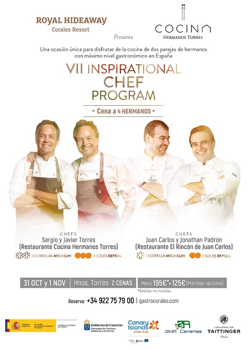 En el marco del programa, el hotel acogerá dos exclusivas cenas a cargo de las dos parejas de hermanos el domingo 31 y el lunes 1 de noviembre, en el restaurante El Rincón de Juan Carlos, galardonado con una estrella Michelin y dos soles Repsol. Una ocasión única para disfrutar de la cocina de dos parejas de hermanos con máximo nivel gastronómico en España.