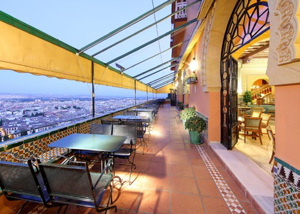El hotel granadino, que se construyó bajo el influjo neomudéjar, combina el legado nazarí y el cristiano, ostentando una arquitectura única en un edificio de sus características y funciones. Se creó a imagen y semejanza del Palacio de La Alhambra y está decorado bajo los cánones nazaríes. Armonizan materiales tan diversos como madera, cobres, yesería y azulejos con colores vivos como el naranja galatea, el azul añil o el rojo intenso, que destacan los dorados de muebles y ornamentos de habitaciones y salas comunes.