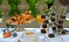 Entre tanto, puede disfrutarse de un espumoso café, un zumo recién exprimido o un cóctel de champán y frutos rojos. Después, fina bollería casera, sandwichitos, mini hamburguesas, tortillas individuales, pequeños huevos Benedict o diminutas pancakes para tomar de forma cómoda, dando los últimos sorbos de espresso tomando el sol en la maravillosa terraza con vistas a las azoteas del Madrid más señorial y a los castaños del jardín.