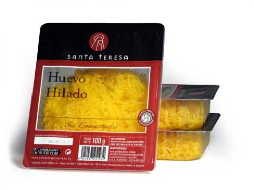 Santa Teresa, una empresa española consagrada a la buena gastronomía, cuyos orígenes se remontan a mediados del siglo XIX, recogió el testigo, y durante mucho tiempo ha venido elaborando el huevo hilado de manera artesanal. Sus ingredientes han sido siempre los mismos: yema de huevo fresco y azúcar; sin conservantes ni aditivos; con total asepsia en su elaboración; y con la misma materia prima de las famosas yemas que dan nombre a la empresa SANTA TERESA.