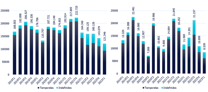 Contratación en los sectores alimentación (izq.) y bebidas (der.)