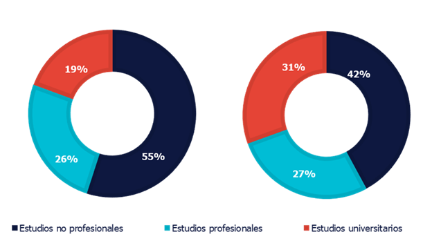 Profesionales por estudios en el sector de la alimentación y bebidas