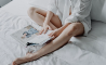 5. Retira las Vendas Drenantes y vuelve a masajear la zona tratad para eliminar el exceso de producto, con movimientos ascendentes (no es necesario enjuagar).