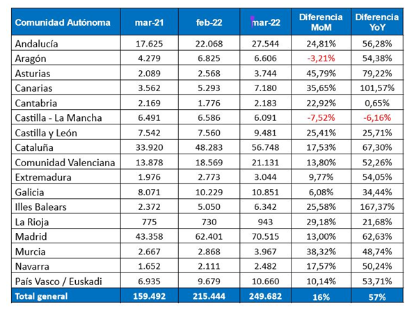 InfoJobs, plataforma líder en empleo en España, registró el pasado mes de marzo un total de 249.682 vacantes de empleo para trabajar en España, un 16% más que en febrero (215.444).