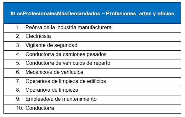 En lo que se refiere a la categoría de profesiones, artes y oficios, que es la que mejor se ha comportado en junio, se detallan los puestos más demandados para este sector: