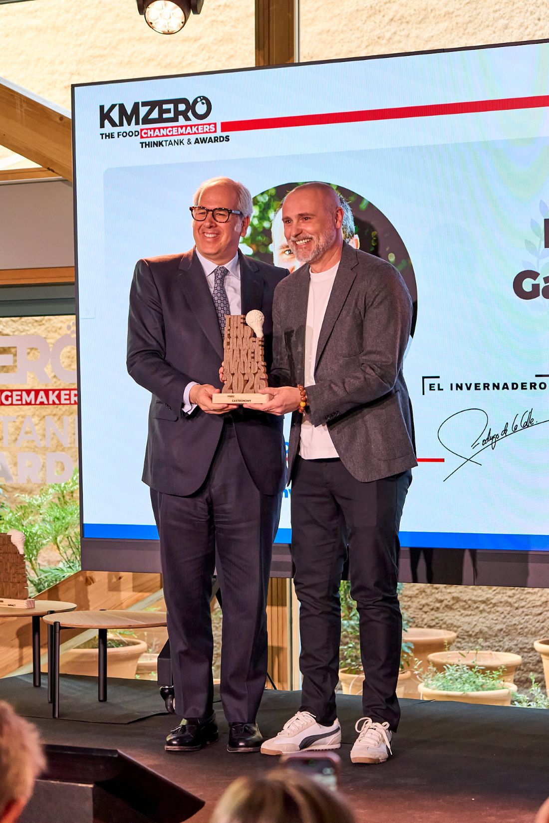 El premio Food Changemaker en la categoría Futuro de la Gastronomía ha recaído en el chef Rodrigo de la Calle, galardonado con una Estrella Michelin y una Estrella Michelin Verde por la propuesta de su restaurante El Invernadero, considerado el mejor restaurante de verduras del mundo. El reconocimiento ha sido otorgado por Luis Suárez de Lezo, presidente de la Real Academia de Gastronomía, subrayando la importancia del galardón para reconocer “su visión de futuro y su capacidad de liderar con innovación poniendo siempre en valor el producto y el territorio”.